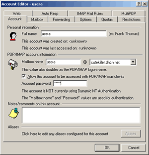 Account password: 填入新用户的邮件口令