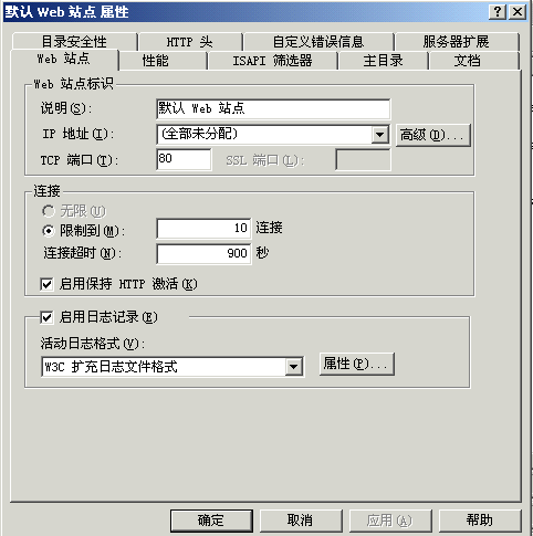 | Win2000服务器端默认站点设置(设置“默认Web站点”) |