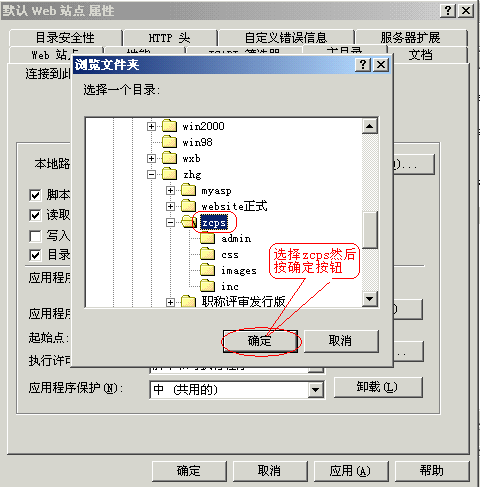 ⑶设置“主目录”:在“本地路径”通过“浏览”按钮来选择你的网页文件所在的目录,本文是“D:\zhg\zcps”。如下图:
