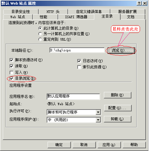 | Win2000服务器端默认站点设置(设置“默认Web站点”) |